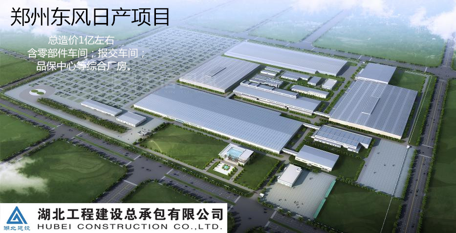工程概况:东风汽车郑州基地年产20万辆乘用车产能扩建项目,总造价约1亿元,包括汽车零部件、报交车间、品保中心、污水处理厂、综合站房、食堂等工程。